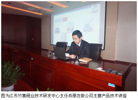 中國城鎮供水排水協會副會長、上海市供水行業協會會長樂林生,中國閥門協會宋銀立秘書長,中國城鎮供水排水協會設備管道物資部主任白迪祺,以及晶陽集團董事長嵇為俊、江蘇竹簀閥業董事長吳濤等領導參加了會議并分別講話,江蘇閥協盛根林副秘書長也應邀參加了會議.接著進行了技術專題講座。會議由江蘇竹簀閥業湯偉總經理主持。