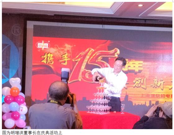 晚上,在上海中青旅東方國際酒店隆重舉行了“攜手15周年,共創新輝煌”15周年慶典活動,公司胡增洪董事長做了精彩的發言,重點回顧了增欣15年發展歷程,胡總說:“上海增欣機電科技自2001年成立以來,經過十五年的艱苦創業,從小到大,公司的生 產規模和銷售規模已位居于同行業前列。其產銷業績一直名列我國閥門檢測設備同行業的前茅。上海增欣機電科技在多年發展中,致力于成為行業內一流的閥門檢測設備供應商。公司一直以來堅持自主創新,2006年有了自己的廠房,創下在同行中多項第一的業績,2007年為紐威閥門研制了國內最大的2600噸的試驗臺,可試56”600LB的全焊球閥,2007年銷售達到1800多萬元;2008年成功研制了一鍵通全自動測試的試驗臺,填補了該行業的空白,產品在國內多個特檢機構使用;2009年4月與上海耐萊斯為國內西氣東輸全焊球閥48”900LB的(堪稱全球最大承壓3200噸壓力)閥門試驗臺研發成功與驗收,2010年榮獲了上海市高新技術企業,上海市科技創新企業的榮譽;2012年銷售突破5000多萬元;在2012年又為石家莊閥門一廠研制了壓力PN10 ;承壓達2000多噸,DN3600的蝶閥試驗臺;2013年又緊隨行業發展步伐,配合中石油西氣東輸管線的戰略,又一次成功研制了世界唯一的56“900LB 72”300LB的全焊球閥試驗臺,為上海電氣閥門與中石油渤海石油裝備制造公司提供了兩臺設備;并多次獲得上海市的創新基金獎勵,并不斷研發生產出各種扭矩試驗臺、壽命試驗臺等,創下了試驗臺行業多項空白,攻克了多項難題。現有實用新型專利16項、發明專利3項,產品大部分都配置了電腦監測記錄系統,并可實現局域網共享,實現了在檢測過程中的全程監控,數據保存可追溯,為今后工業4.0打下基礎。”