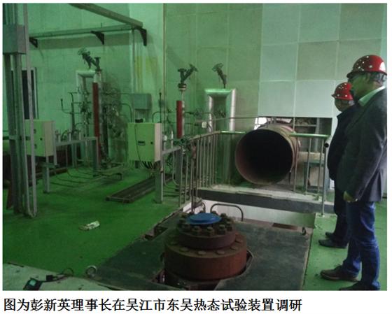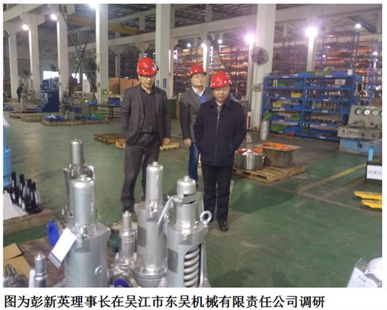 下午,彭新英理事長還來到吳江市東吳機械有限責任公司調(diào)研,這家公司主要以安全閥為主的專業(yè)生產(chǎn)廠家,先到生產(chǎn)車間和大型安全閥熱態(tài)試驗裝置參觀,