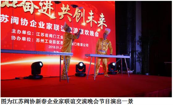 1月29日晚上,江蘇省閥門工業(yè)協會在蘇州舉行了“開拓奮進共創(chuàng)未來”為主題的新春企業(yè)家聯誼交流晚會,江蘇閥協理事長、中核蘇閥科技實業(yè)股份有限公司董事長彭新英和江蘇閥協常務副理事長、揚州電力設備修造廠有限公司總經理蔡軍等領導,以及來自江蘇閥協的100多家會員企業(yè)的企業(yè)家等企業(yè)高管等150多人參加了此次聯歡晚會。
