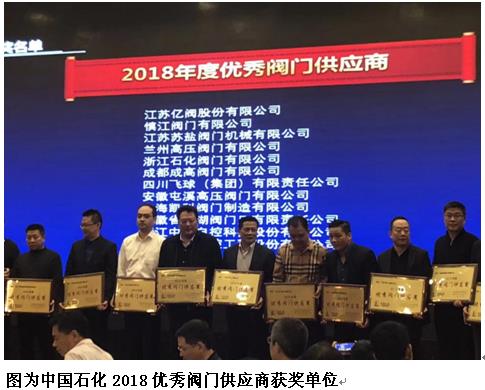 蘇鹽和億閥等公司榮獲“中國石化2018年度優(yōu)秀閥門供應(yīng)商”