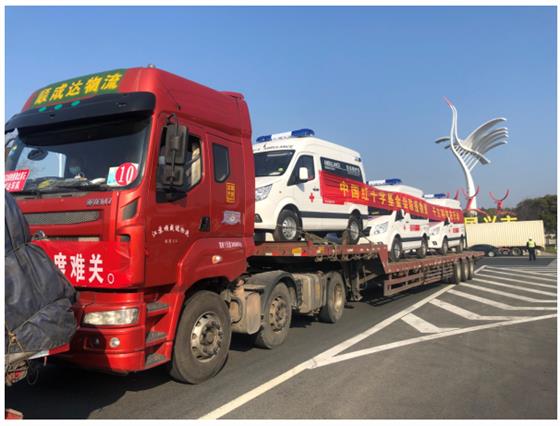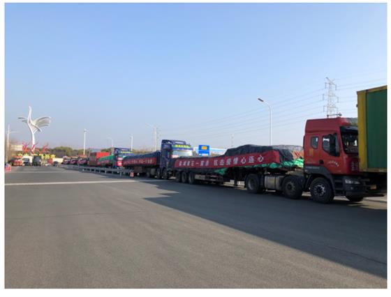 11.30分,隨著顧市長一聲"發車"令下,10輛裝滿捐贈物資(包括240噸大米、12噸食用油、1輛負壓救護車)的卡車,帶著鹽阜人民的深情厚誼,帶著鹽城石油機械企業和廣大員工的滿腔愛意,在-輛警車開道、一輛公路交通保障車的護送下,緩緩地駛上高速,向江蘇省對口支援的湖北省黃石市馳援而去。將歷經18個小時、行程900多公里才能到達,祝他們一路順風,平安歸來,圓滿完成此次光榮使命。