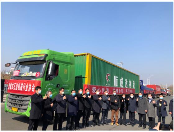 2月20日上午,鹽城市石油機械行業協會、鹽城市慈善總會,在鹽城西高速口,共同舉行捐贈湖北黃石物資發車儀式。