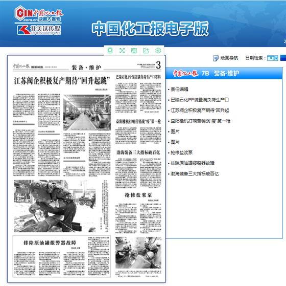 【編者按】2020年2月20日,國家級大報《中國化工報》重要位置頭條刊載“江蘇閥企積極復產期待回升起跳”專題新聞,由江蘇省閥門工業協會秘書處盛根林提供的原稿!