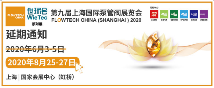 鑒于目前我國新型冠狀病毒感染肺炎疫情防治面臨嚴峻形勢,上海市已啟動重大突發公共衛生事件一級響應機制,并全面取消或延期近期各類大型公共活動。 為避免人員聚集引發交叉感染,最大限度降低人群集聚可能造成的疫情傳播風險,保障所有展商、觀眾及參會人員的安全和健康,主辦方決定,將原定于2020年6月3-5日在上海國家會展中心(虹橋)舉辦的第九屆上海國際泵管閥展覽會將延期至2020年8月25-27日舉辦。