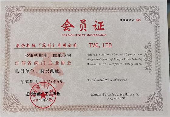 泰倫機械(蘇州)有限公司新加入江蘇省閥協(xié)組織