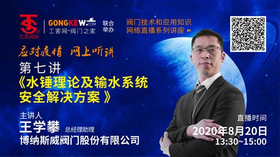 【直播預告】江蘇閥協網上直播第七講8月20日走進省外天津--博納斯威閥門股份公司現場直播