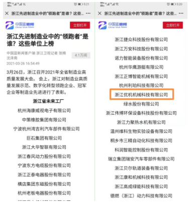浙江優(yōu)機(jī)機(jī)械科技有限公司上榜浙江先進(jìn)制造業(yè)“領(lǐng)跑者”名單