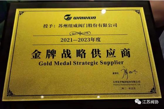 近日,蘇州紐威閥門(mén)股份有限公司參加了萬(wàn)華化學(xué)舉辦的以“發(fā)展、合作、生態(tài)、共贏”為主題的2021年供應(yīng)商大會(huì),并榮獲萬(wàn)華化學(xué)“金牌戰(zhàn)略供應(yīng)商”這一殊榮。