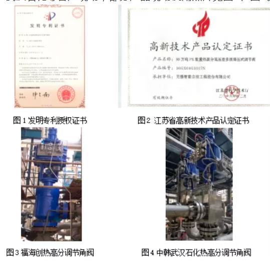 為積累經驗,項目組從客戶檢維修技改項目做起,不斷總結進口產品的優缺點。在項目開發過程中,黨員干部充分發揮先鋒模范作用,帶領團隊知難而進,先后攻克了閥芯壓降分配、閥內流速控制、多相流流場及閥門噪音場仿真、閥芯抗振等關鍵技術難題;改善了閥內件材料的熱處理及表面硬化工藝;解決了多級降壓閥芯及套筒的高精度加工問題。歷時近18個月,項目組成功研發出具有完全自主知識產權的J系列軸流型串式多級降壓調節閥,并獲國家發明專利授權及江蘇省高新技術產品認定,證書分別見圖1、圖2。該系列產品壓力等級Class900~Class2500,公稱通徑DN25~DN200,降壓級數3~6級,密封等級優于V級,調節閥的定位精度優于0.5%,死區≤0.25%,分辨率<0.125%,響應時間T63為0.3秒,全行程動作時間≤1秒/寸,填料及墊片滿足ISO15848或Ta-luft低逸散排放標準要求,全行程導向閥芯可滿足閥門水平管道或垂直管道安裝需求。產品主要技術參數指標達到甚至超越進口產品,可完全實現國產化替代。此類產品已先后成功應用于福海創石化、洛陽金達、中韓武漢石化等客戶現場,部分產品現場使用照片見圖3、圖4。