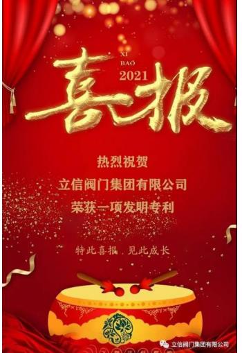 立信閥門集團有限公司再次獲得一項國家發明專利