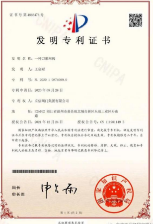 > 專利資訊 >立信閥門集團有限公司再次獲得一項國家發明專利