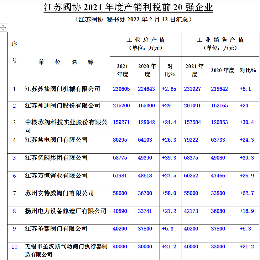 附:江蘇閥協2021年度產銷前20強企業