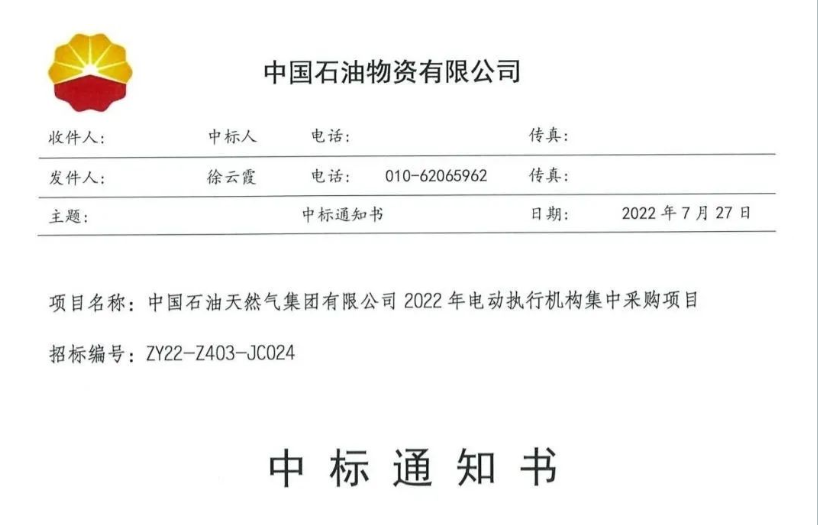 7月28日,中國石油天然氣集團正式下發中標通知書,江蘇閥協中4家電裝企業中標中國石油2022年電動執行機構集中采購項目。