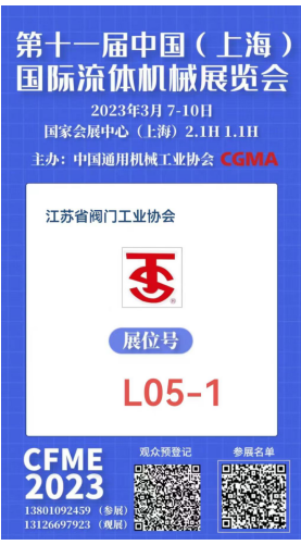 3月7日-10日在上海國家會(huì)展中心舉辦第十一屆中國(上海)國際流體機(jī)械展覽會(huì),江蘇閥協(xié)在展會(huì)現(xiàn)場與大家交流。江蘇閥協(xié)展位號:1.1H館L05-1,相聚上海同臺面對面交流,共謀閥門行業(yè)發(fā)展大計(jì)。