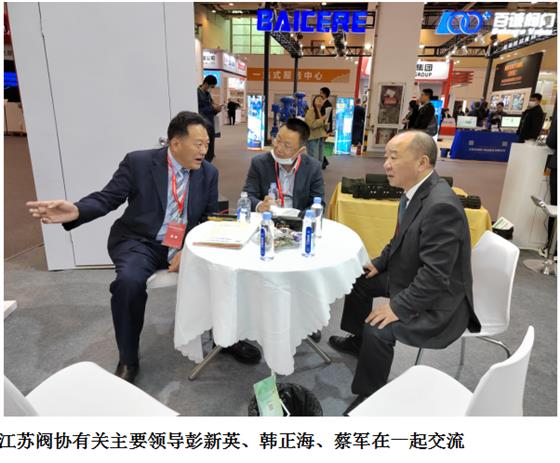 江蘇閥協(xié)秘書長盛根林等參展并與參展企業(yè)主要領(lǐng)導(dǎo)溝通交流。