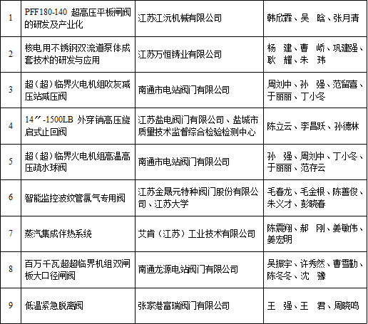 最近,經江蘇省機械工業科技進步獎獎勵評審委員會專家評審,全省機械行業評出特等獎1項,一等獎48項,二等獎73項,三等獎68項,江蘇閥協中有14家會員企業參與此項獎申報,參與15項全部獲獎,其中二等獎6項,三等獎9項。對此江蘇閥協對14家獲獎會員企業表示熱烈祝賀!