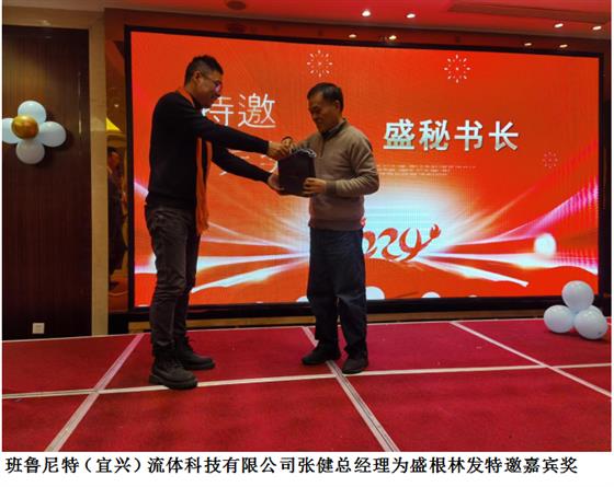 江蘇閥協秘書長盛根林應邀參加班魯尼特(宜興)流體科技有限公司喬遷開業儀式及晚會活動