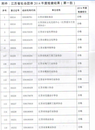 7月23日 江蘇省民政廳發文并在江蘇民政網站公布,根據國務院《社會團體登記管理條例》和江蘇省民政廳《關于開展全省性社會組織2014年度檢查工作的通知》(蘇社管〔2015〕2號),江蘇全省性社會團體2014年度檢查工作(第一批)已結束,包括江蘇省閥門工業協會在內的共有全省574家年檢合格,并予以對外公告。